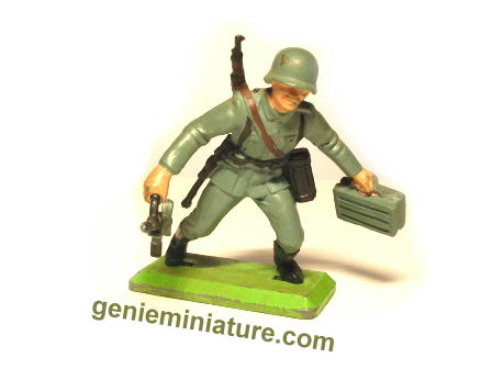 porte pelle marron, la Mg est elle aussi marron, ou bien noire, suivant les versions. Le visage et les mains de ce fantassin allemand de la seconde guerre mondiale sont soulignés de couleur chair. Un écusson autocollant