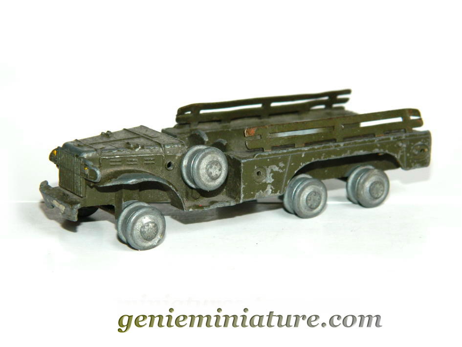 L'ensemble est réalisé en zamak, maintenant peint de couleur sable, le pare choc avant est parfois blanc mat, la cabine du camion est non vitrée. Ce camion militaire est un GMC de 2,5 tonnes type 1941/45. Les trois personnages réalisés en matière plastique sont assis à l'arrière, un autre est sur un siège derrière le lanceur mutiple a six tubes. Les jantes en zamak sont chaussées de pneus noirs ou blancs cylindriques et striés…