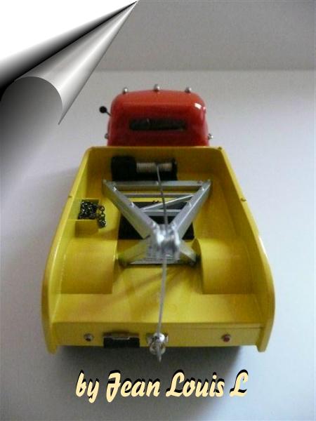 Cette dépanneuse militaire a demandée pour sa réalisation une base de bazar largement modifiée, qui garde l'avantage non négligeable d'être fonctionnelle. Le poste de conduite a demandé pour sa réalisation deux cabines de Renault 180 Solido, ce qui a entraîné un rallongement évident du châssis.