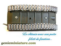 et d'un "2 DB". Le train de roulement est fonctionnel, avec ses galets réalisés en plastique teinté de vert, montés sur axes métallique, ce qui lui permet de rouler grâce a ses fameuses chenilles articulées en zamac moulé sous pression.