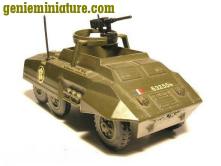 éch: 1/50. Le combat car us 6x6 Ford M20 produit par Solido est une version Standard modèle 1942/43, en service dans les FFL, le rail circulaire est toujours porteur de la mitrailleuse de 12.7 mm du type Browning.