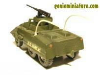 éch: 1/50. Le combat car us 6x6 Ford M20 de Solido est ici en dans sa version dite Standard modèle 1942/43, avec son rail circulaire porteur d'une mitrailleuse de 12.7 mm du type Browning.
