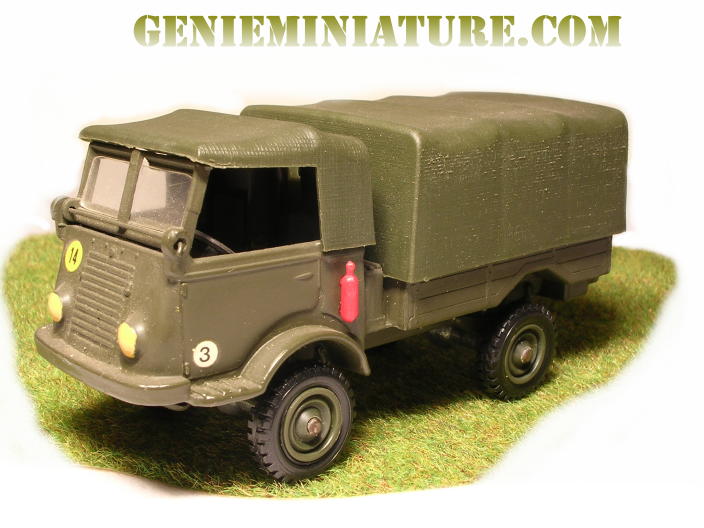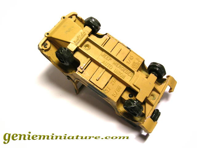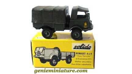 Un modèle réduit que Solido reproduit fidèlement en zamak et matière plastique de couleur vert armée brillant. Les deux bâches en plastique semi souple sont vertes ou grises, selon les variantes, elles sont amovible. Les jantes en tôle décolletées sont chaussées de petits pneus souple, le tout monté sur une ingénieuse suspension fonctionnelle de type ressort a aiguille, brevetée par Solido. Le châssis serti de ce 4x4 Solido est en zamak, tout comme le crochet de remorquage, les phares sont moulés à même la caisse. Les phares sont soulignés de jaune ou d'argent et les feux arrières de rouge, le volant en plastique est teinté de blanc, de noir ou de rouge, un extincteur rapporté en plastique teinté de rouge est placé a gauche de la cabine.